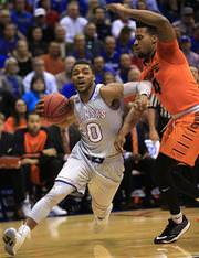 The lead swelled to 18 points early in the second before Oklahoma State went on a run of its own, trimming its deficit to 61-54 at the under-12 timeout. But the Jayhawks answered with a coldly efficient 10-0 to regain control, and they waltzed the rest of the way to their sixth straight win.