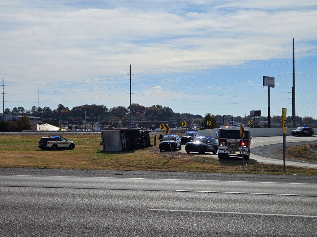 (PHOTO: Semi rolls over Interstate 40 near 45 Bypass – courtesy Terry Story – Golden Media Group)