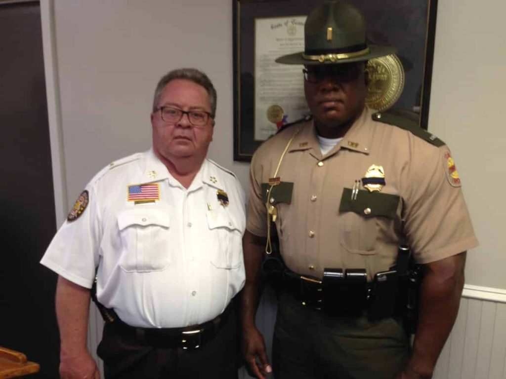 (PHOTO: Frankie Lax, left, with Lt. William Futrell, Tennessee Highway Patrol)