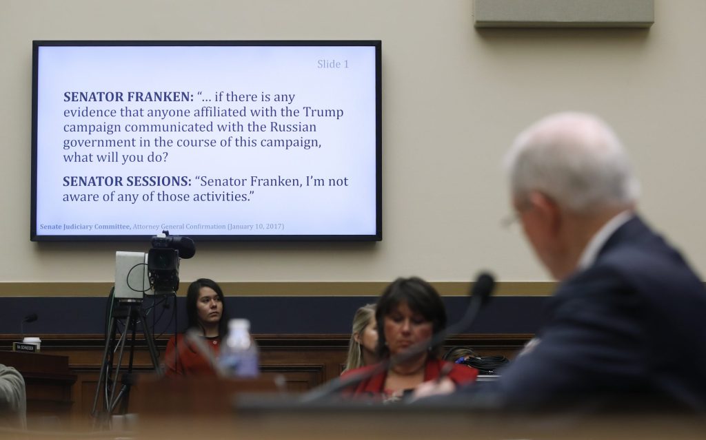 WASHINGTON (AP) — Attorney General Jeff Sessions on Tuesday displayed a hazy memory of the Trump campaign’s discussions about and dealings with Russians in the 2016 election, denying he ever lied to Congress about those contacts but blaming the chaos of the race for fogging his recollections.