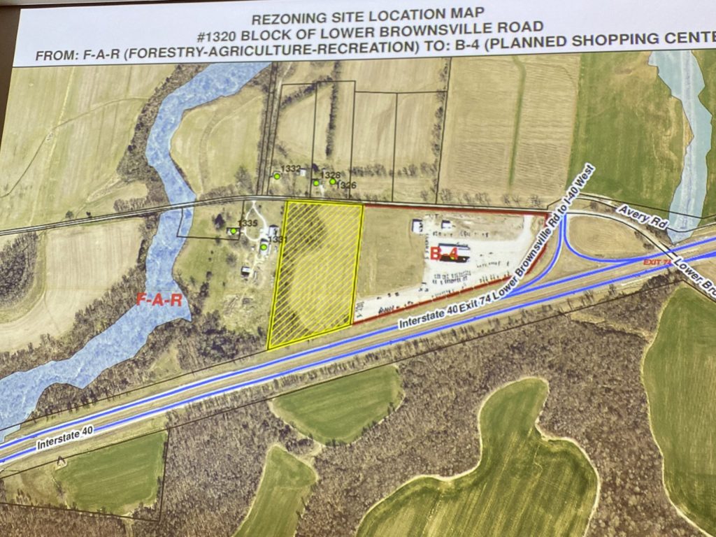 A request to rezone property located at the 1320 Block of Lower Brownsville Road from Forestry Agriculture Recreation to Planned Shopping Center District passed its first hurdle following approval by the Jackson Municipal Regional Planning Commission.