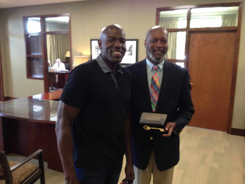 (PHOTO: Tony Delk, left, is presented the Key to the City of Jackson, by Jackson vice mayor and city councilman Ernest Brooks II)