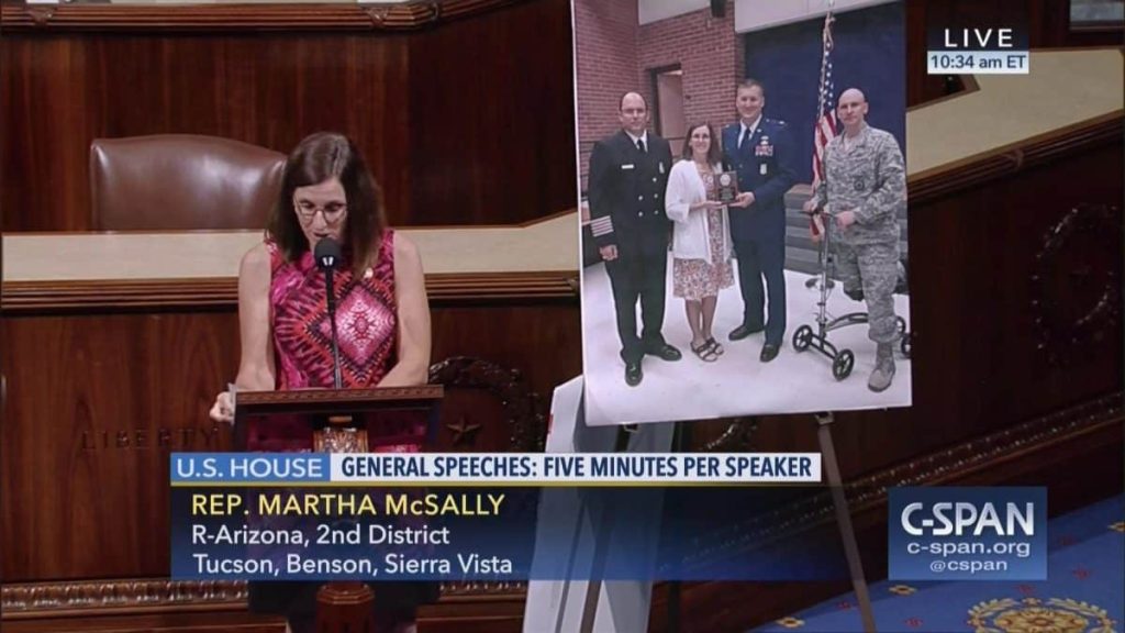 “Before I yield back, I want to point out, I’m standing here in my professional attire, which happens to be a sleeveless dress and open-toed shoes,” McSally said. “With that, Mr. Speaker, I yield back.”