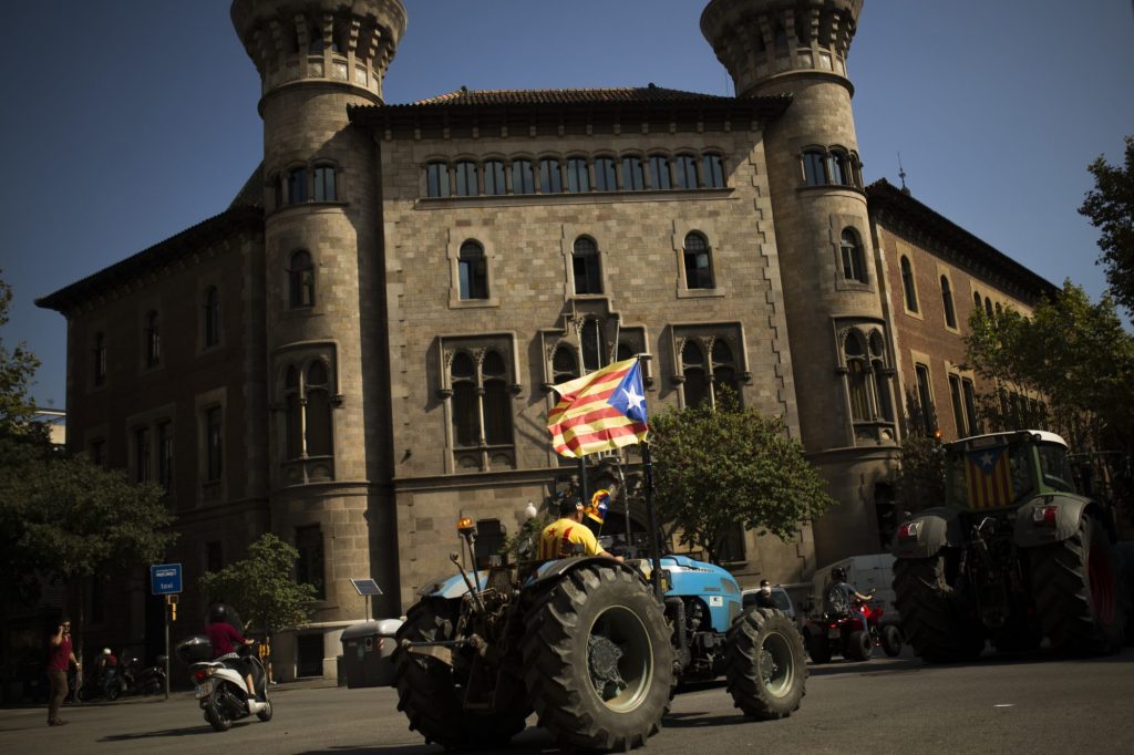 BARCELONA, Spain (AP) — Scores of Catalan farmers on tractors rumbled into downtown Barcelona on Friday, driving down the city’s broad boulevards in a show of support for a potentially explosive vote on whether the prosperous region should break away from the rest of Spain and become Europe’s newest country.