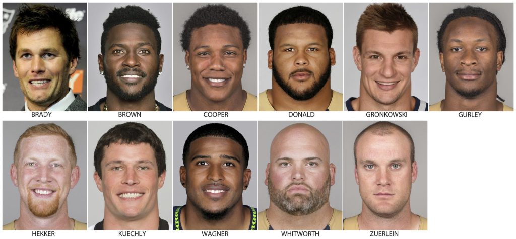 The repeaters from 2016 were Brown; Rams interior defensive lineman Aaron Donald, who got 49 votes, and punter Hekker; and Seattle linebacker Bobby Wagner.