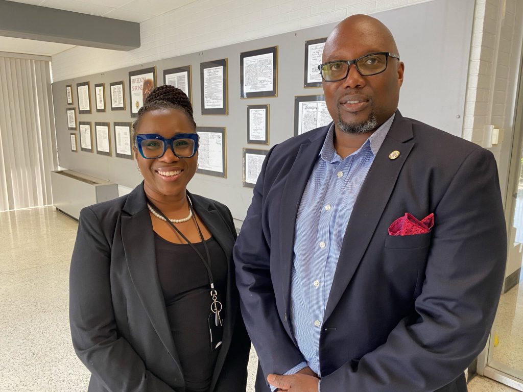 (PHOTO: Stephanie Graham, JPD public information officer, left, and Derick Tisdale, JPD’s Deputy Chief of Police)