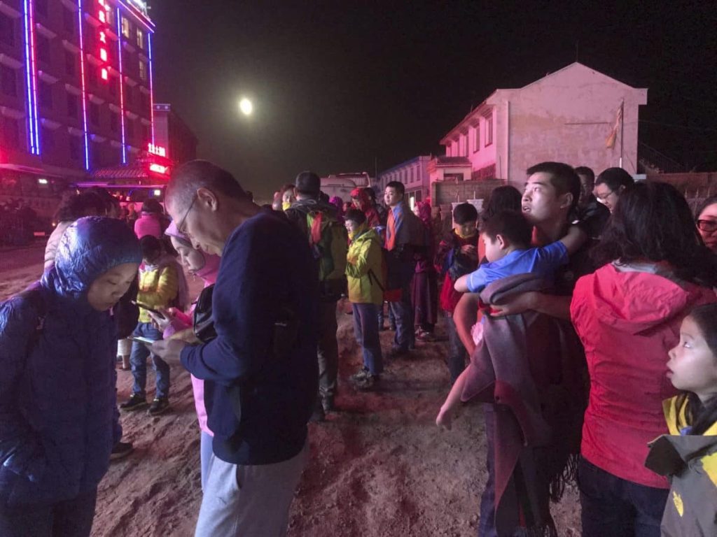 Images on Chinese social media sites showed rocks scattered on roads and people running out of bars and cafes in Jiuzhaigou town onto the street.