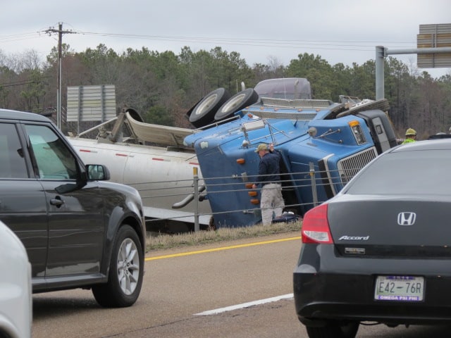 A tanker truck overturned on Interstate 40 near Exit 82 on the westbound side.