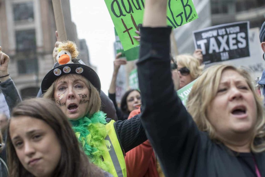 The demonstrations came just days before Tuesday’s deadline for taxpayers to file their returns. Trump was the first major-party nominee in more than 40 years not to release his tax returns, saying it was because he was under audit. He later said that voters don’t care.