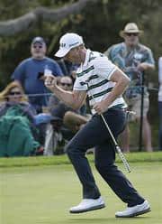 The real blow came at the 16th, a 30-foot birdie putt on one of the toughest greens at Pebble. He rammed it hard enough and watched it break back into the cup, and Taylor ran around the green to celebrate.