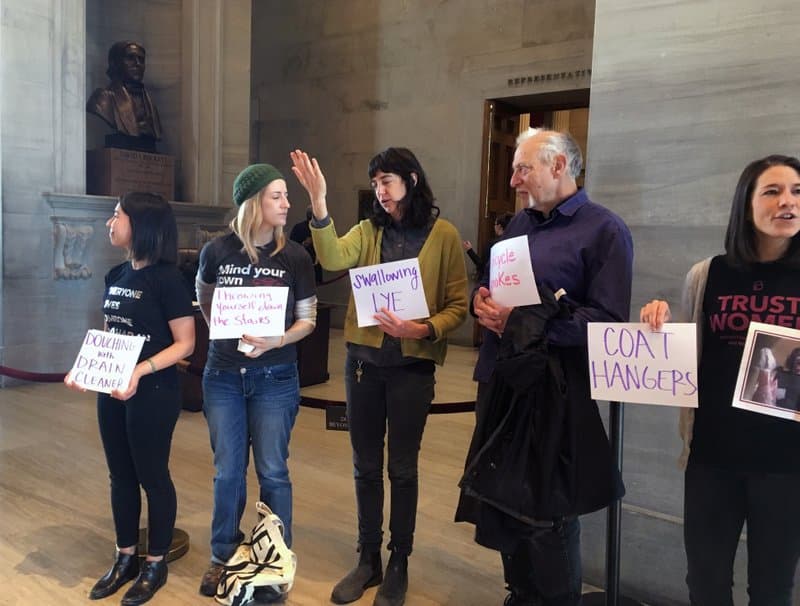 Two dozen protesters had stood outside the House chamber as lawmakers headed to the floor, chanting and holding signs about the possible harm women would face if unable to undergo an abortion.