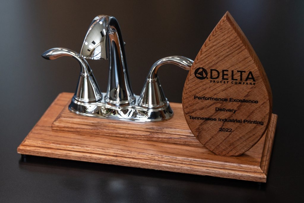 JACKSON, TENNESSEE – Tennessee Industrial Printing is pleased to announce that the company is a winner of the Performance Excellence Delivery award presented by Delta Faucet Company.