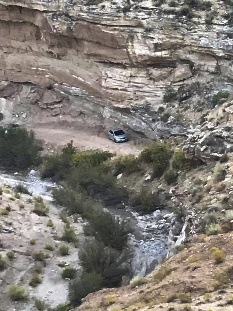 The couple left their motel in a small town of Kanab, Utah, in the morning on Sept. 26 to drive to Lake Powell in a rental sedan and took a rocky dirt road while following directions from a GPS-mapping app, he said. The dirt road that winds through a small canyon has large rocks and 18-inch drops at some points, Alldredge said. The couple turned around when they realized they were on the wrong road, but they couldn’t get out.