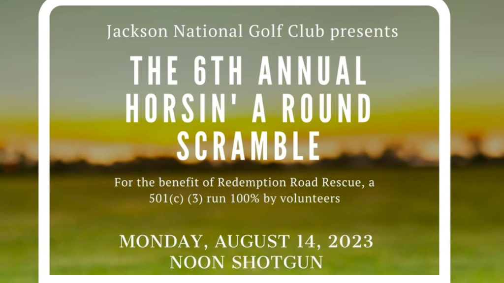 Redemption Road Rescue, an organization focused on rescuing horses until no more need be rescued, will host the 6th annual “Horsin’ A Round” golf scramble on Monday, August 14 at the Jackson National Golf Club.