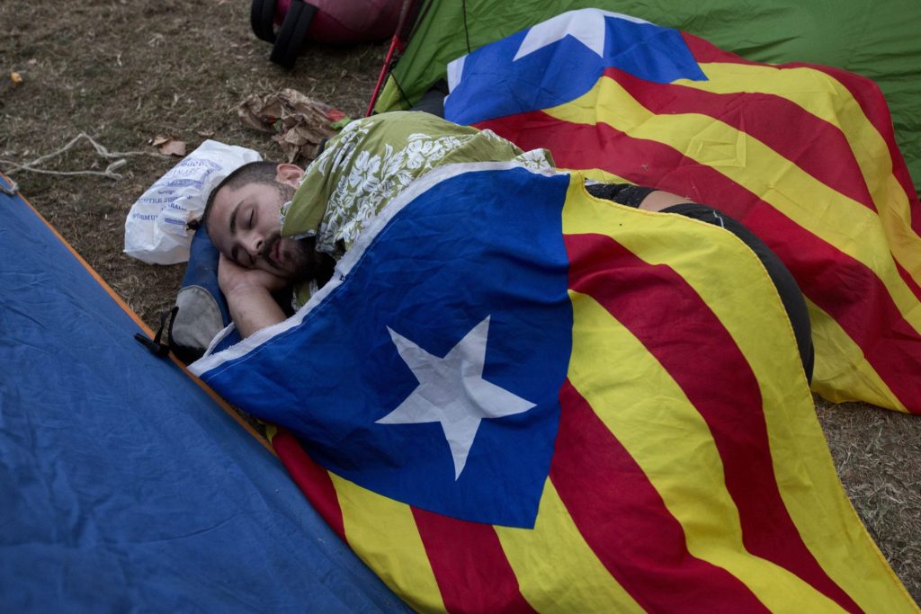 Many of the demonstrators in Barcelona had slept overnight near the judiciary building in tents or hammocks strung up between lampposts.