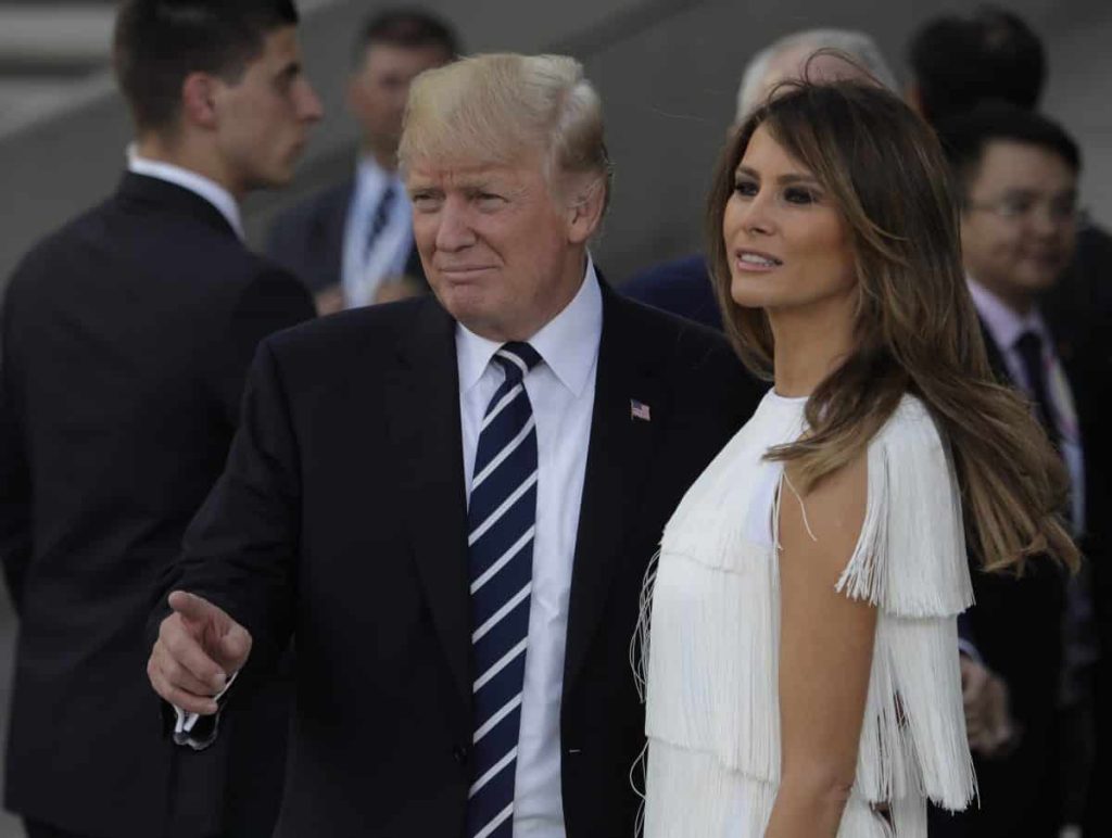 President Donald Trump and first lady Melania Trump were seated next to French President Emmanuel Macron and his wife, Brigitte.