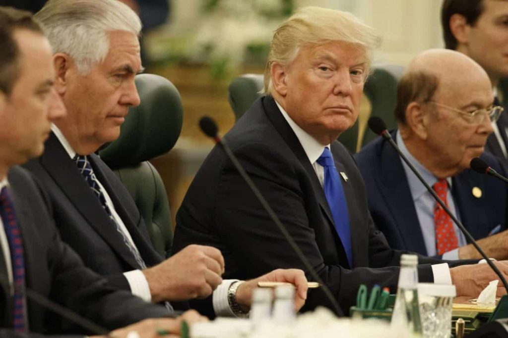 Trump was joined by first lady Melania Trump and several senior White House aides who were interspersed with Saudi officials throughout a grand ballroom.