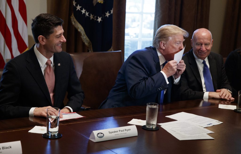 Attending an event with House Speaker Paul Ryan and other lawmakers, Trump says: “This is a middle income tax reduction.”