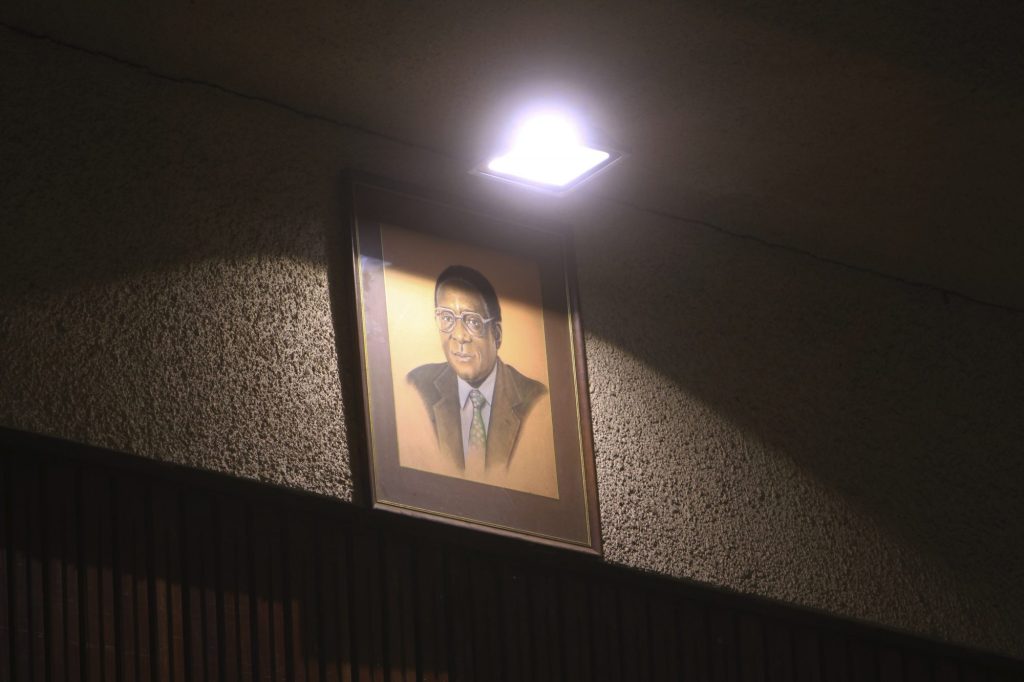 At the edge of the party’s compound, a ruling party banner that showed Mugabe’s face has been partly torn down, possibly by demonstrators who surged through Harare on Saturday to demand that the president resign.