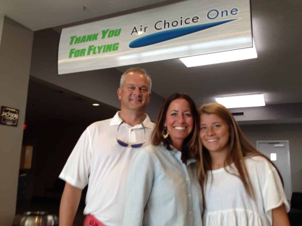 Nathan, wife Angela and daughter Savannah, were three of the first passengers to fly from McKellar-Sipes Regional Airport when Air Choice One began offering service to Destin’s Executive Airport, Thursday.