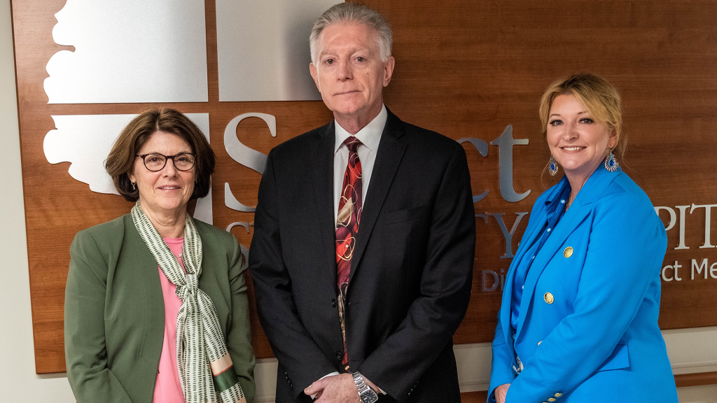 (PHOTO: From left, Mary Leddy, Vice President of Specialty Hospitals, Communications & Branding; John Duemmel, Interim CEO of Select Specialty Hospital – West Tennessee, and Amy Garner – Chief Compliance & Communications Officer – West Tennessee Healthcare)
