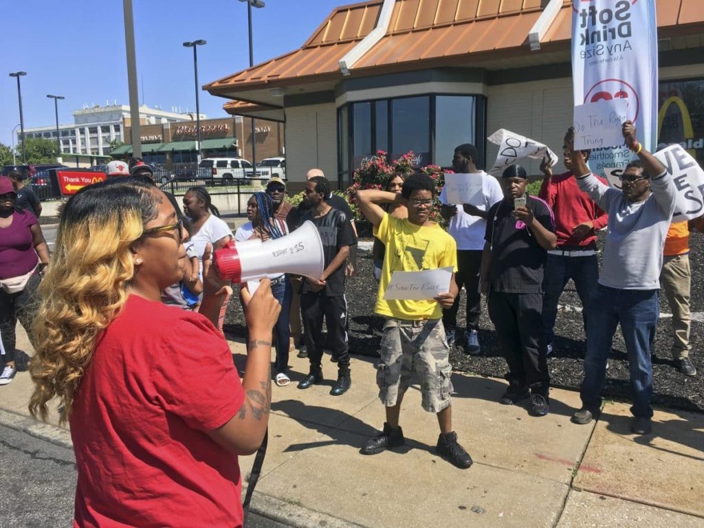 “I was just getting caught up on my bills and was able to start getting things for my child,” said Gennise Mackey, 25, who earns minimum wage at a Taco Bell, and was among about 50 fast-food workers, union leaders and others who staged a protest Thursday at a McDonald’s in north St. Louis. “Now, it’s going to be a big setback. The cost of living is going up and they expect us to live on $7.70?”