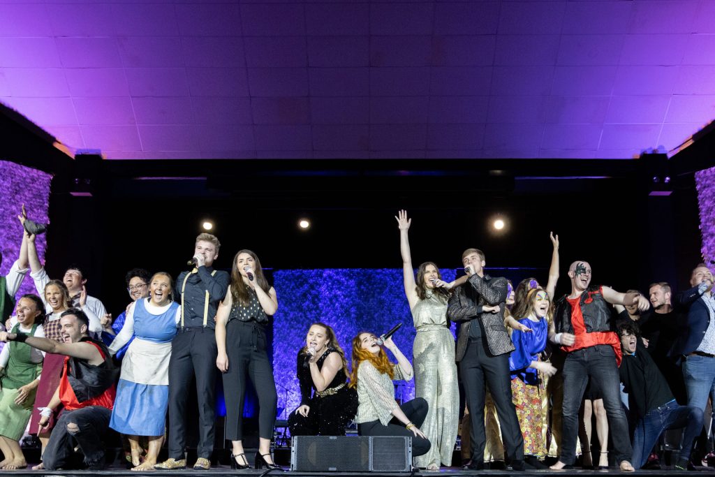Hundreds of students will participate in the show as staff or cast members. The 2022 Makin’ Music hosts and hostesses are Brooks Jackson, a senior Bible major from Florence, Alabama; Josh Grooms, a junior Bible major from Duncan, South Carolina; Brooke Roberts, a junior biology major from Knoxville, Tennessee; Mallory Hollaway, a senior elementary education major from Muscle Shoals, Alabama; Kaitlyn Moore, a sophomore nursing major from Henderson, Tennessee, and Maggie Nash, a senior psychology major from Jackson, Tennessee.