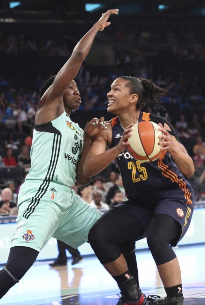 Charles had 12 points and 11 rebounds in the opening 20 minutes. The Liberty’s Shavonte Zellous also had 12 points at the half and finished with 16. She went 11 for 11 at the line.