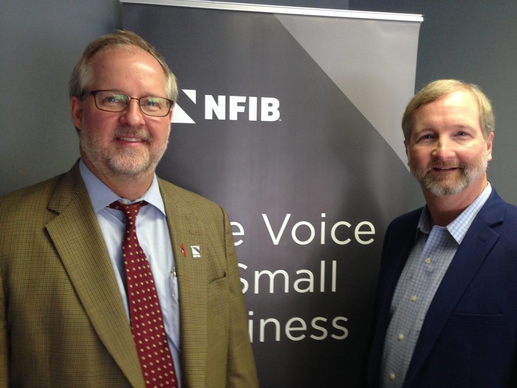 (PHOTO: Chris Todd, right, Republican nominee for the Tennessee House of Representatives in District 73, visits with Jim Brown, Tennessee’s state director of the National Federation of Independent Business)