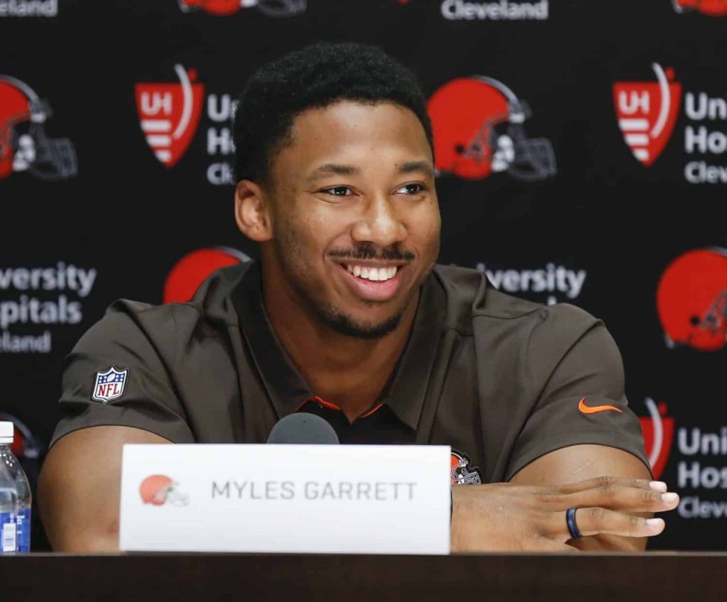 CLEVELAND (AP) — Myles Garrett’s first sack as a pro is filled with money.