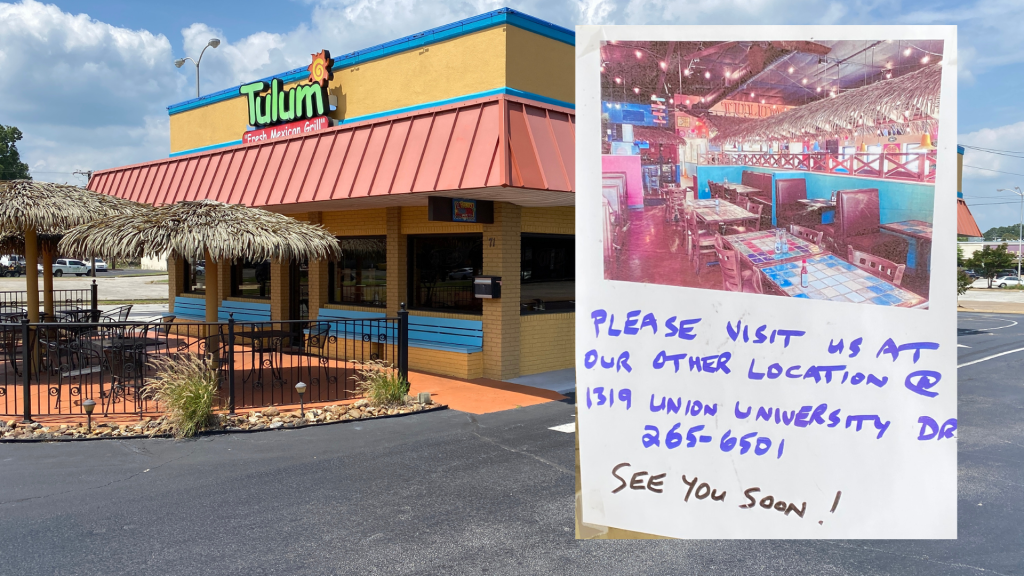 ‘Please visit us at our Tulum North location next to Crumbl Cookies at 1319 Union University Drive until Carriage House (Drive) Tulum can hire enough staff to get reopened.