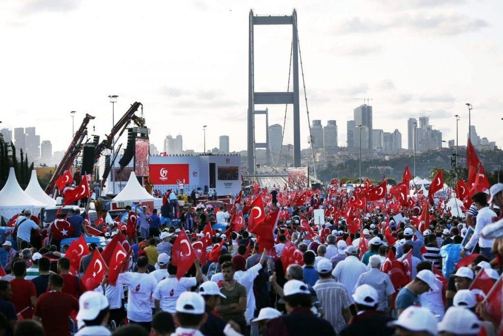 ISTANBUL (AP) — Waving large red Turkish flags, tens of thousands joined a national unity march in Istanbul on Saturday, converging at the iconic July 15 Martyrs’ Bridge to mark the anniversary of the failed military coup attempt that 250 people died resisting.