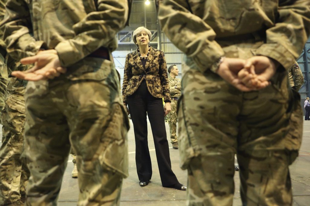 May was speaking to around 200 servicemen and women Friday.