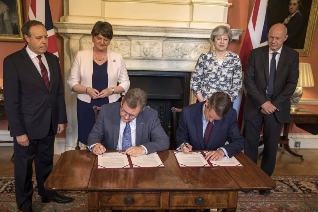 “We also share the desire to ensure a strong government, able to put through its program and provide for issues like the Brexit negotiations, but also national security issues,” May said. “So the agreement we have come to is a very, very good one.”