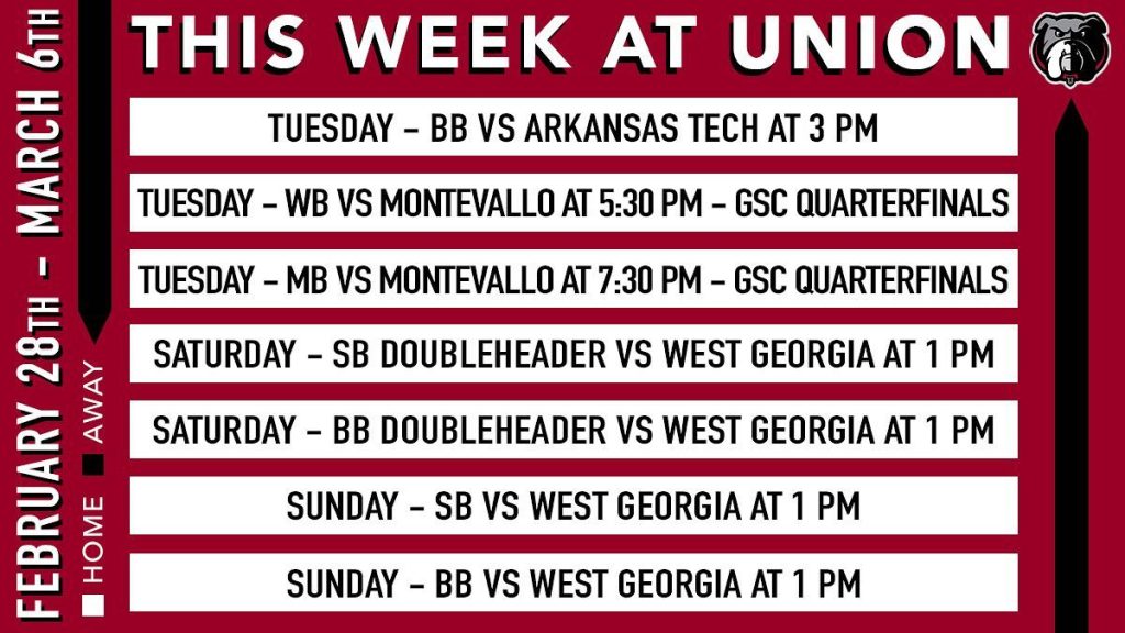The Lady Bulldogs will host 8-seeded Montevallo in the quarterfinals Tuesday night for the second straight season. The Union men earned the No. 2 seed, its highest tournament seed since joining the league in 2012-13. Union will also host Montevallo in the quarterfinals.