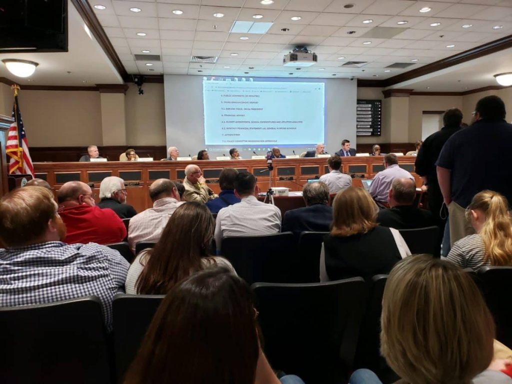 (PHOTO: Jackson-Madison County School Board meeting at City Hall – courtesy Keith Sherley, NEWS/TALK 101.5 FM)