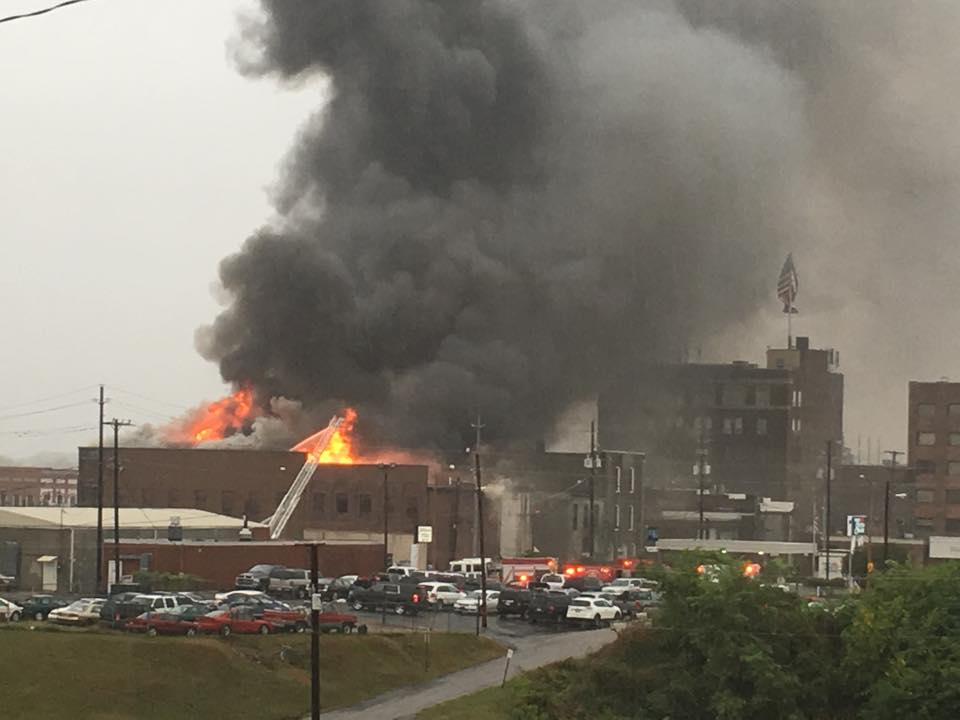 DYERSBURG Tenn (9:15 a.m. Tuesday) – Firefighters are on the scene of a working 4 alarm fire in downtown Dyersburg.