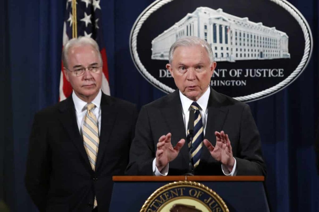 “They seem oblivious to the disastrous consequences of their greed. Their actions not only enrich themselves, often at the expense of taxpayers, but also feed addictions and cause addictions to start,” Sessions said in prepared remarks.