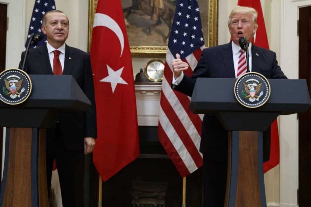 At their meeting Tuesday, Trump said the U.S. would re-establish its military and economic partnership with Turkey, committing to backing Turkey’s defense against both Islamic State and the PKK. Such groups will “have no safe quarter,” Trump said.