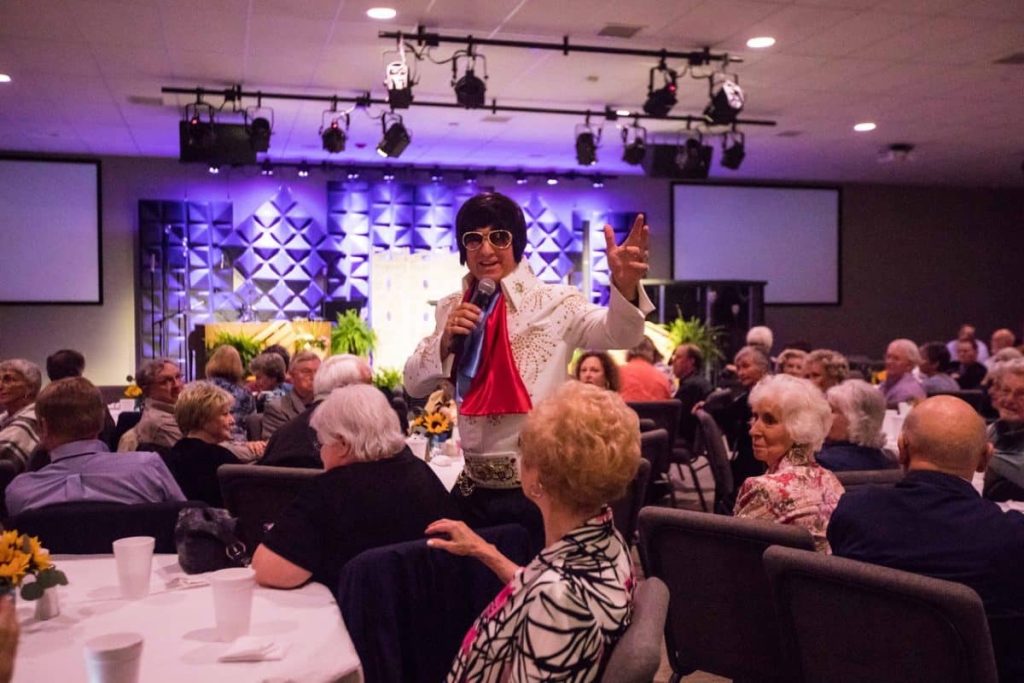 Answer: I don’t just stand on stage. I interact with the audience – making my way around the room while singing directly to individuals. It has required me to put to memory 30-plus Elvis songs.