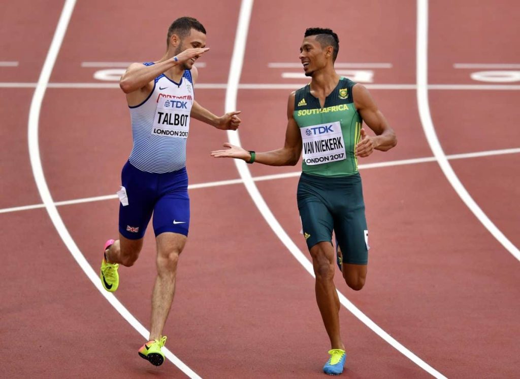 The South African even seemed ready to do British runner Daniel Talbot a favor by handing him a victory. He eased at the line and twice looked at the hard-charging Talbot, but Van Niekerk still ended up crossing the line .001 seconds in front.