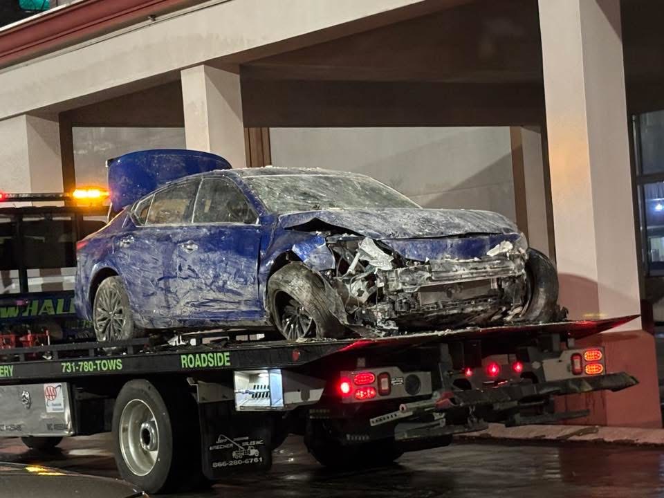 (PHOTO: Car crashes into the Clarion Inn & Suites, 541 Carriage House Drive – courtesy DTRB Traffic Network)
