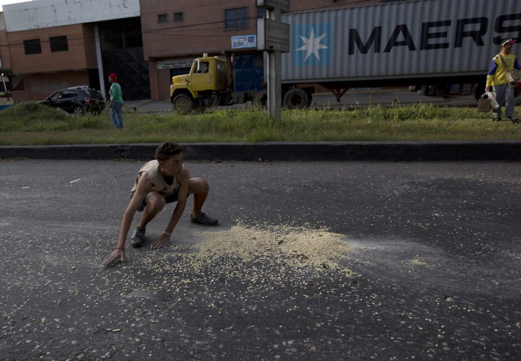 Shortly after pulling away from the docks at Puerto Cabello, the country’s biggest port, he witnessed 20 people swarm a truck ahead of him and in a frenzy fill up their sacks with the corn it was carrying to a food-processing plant. The driver was held at gunpoint.