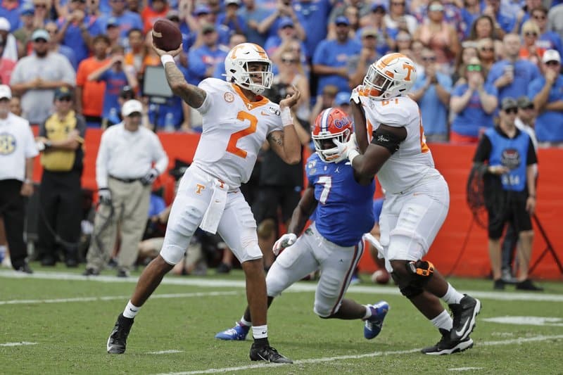 Jarrett Guarantano has started each of Tennessee’s first four games, but the fourth-year junior was benched to start the second half of a 34-3 loss to No. 10 Florida on Sept. 21.