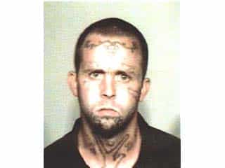 The suspect was identified as a white male with numerous tattoos on his face, including a cluster of grapes on his forehead.