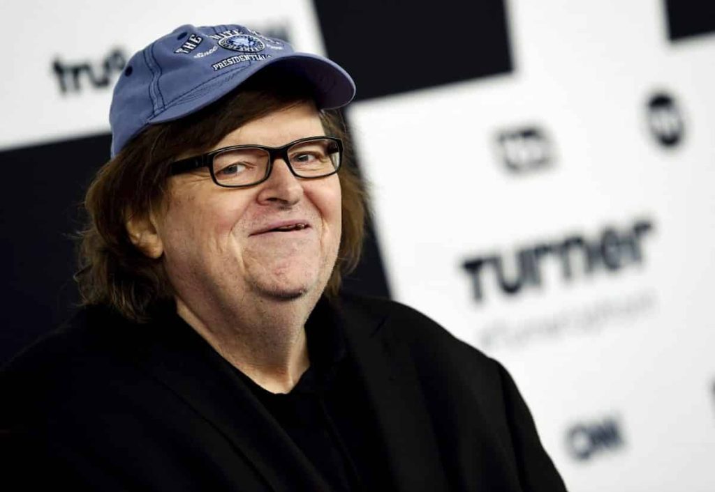 NEW YORK (AP) — Michael Moore showed his patriotism by marching down the Avenue of the Americas with a drum and fife corps after making his Broadway debut.