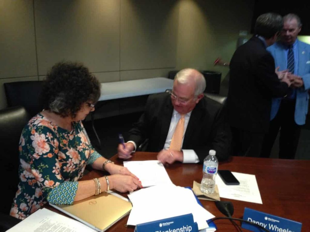 (PHOTO: Danny Wheeler, chairman, West Tennessee Board of Trustees, right, is pictured with Chris Matheny, senior executive assistant, following Tuesday’s Board meeting)