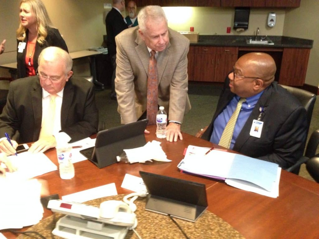 (PHOTO: Danny Wheeler, left, is West Tennessee Healthcare’s chairman of the Board of Trustees. James Ross, right is WTH’s president/CEO and, Curtis Mansfield, center, is a Board member)