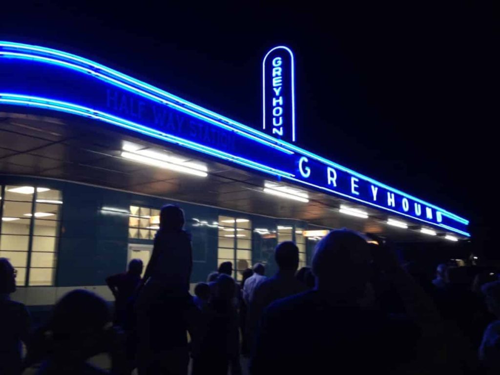 It was a time to look back, and a time to look ahead when the fabled neon lights lit the night at the Greyhound Bus Station at 407 East Main St., Thursday.