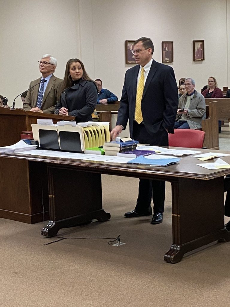 (PHOTO: Nikki Conger, center, with attorney William D. Massey. Timothy Boxx, assistant district attorney is at right – courtesy Keith Sherley, NEWS/TALK 101.5 FM)